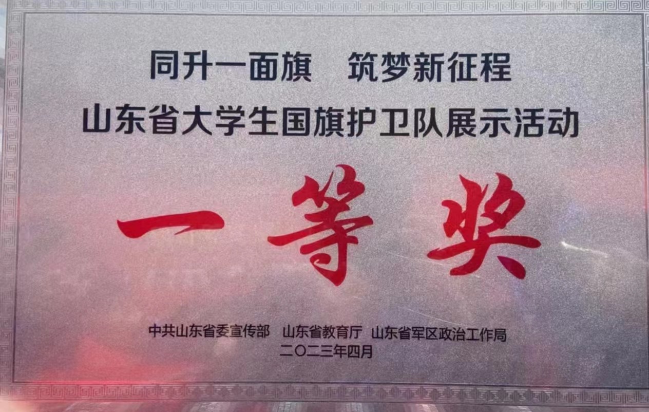 4月25日,我院国旗护卫队在山东省大学生国旗护卫队展示活动中荣获团体一等奖。