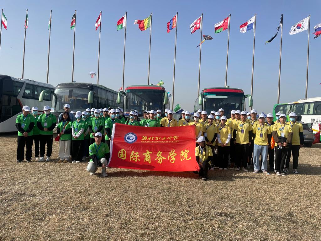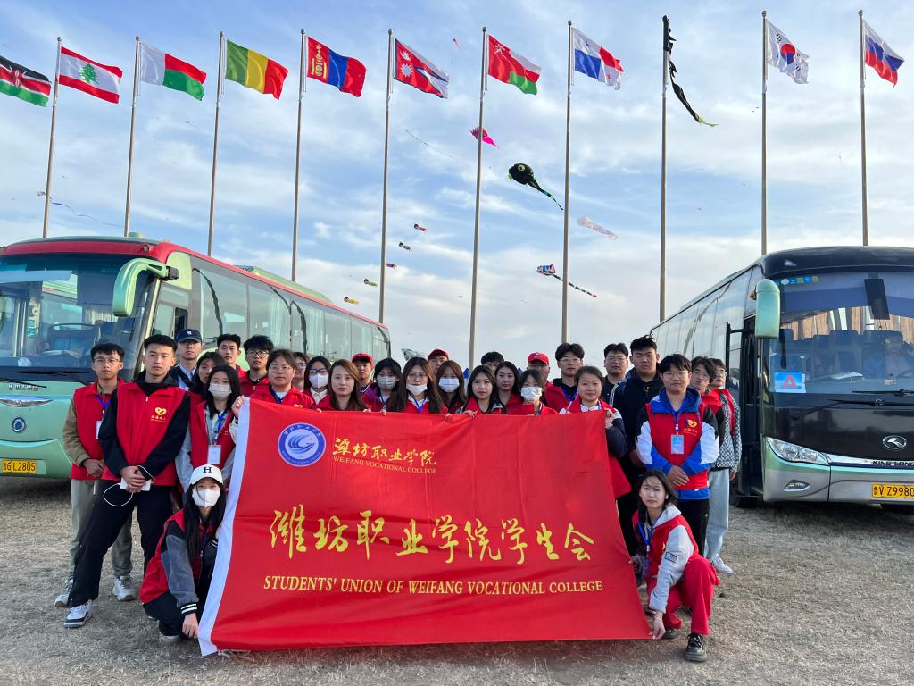 4月15日,第40届潍坊国际风筝会在滨海国际风筝放飞场开幕。来自59个国家和地区的600多名风筝爱好者云集潍坊,比试风筝扎制水平和放飞技艺,万千彩鸢乘海风翱翔,让海滨成为靓丽的风景线。为保障风筝会的顺利举行,学院从食品药品学院、国际商务学院、学生会、大学生青年志愿者协会、“潍爱”青年志愿者协会中选拔200余名志愿者为本次国际风筝会提供志愿服务。