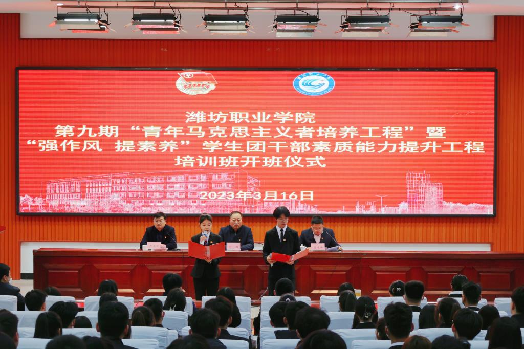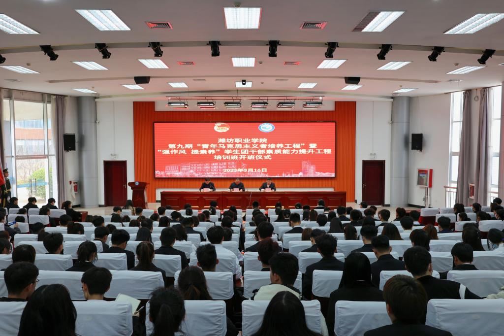 3月16日下午,学院在清泽楼报告厅举行第九期“青年马克思主义者培养工程”暨“强作风提素养”学生团干部素质能力提升工程培训班开班仪式。学院党委委员、组织人事处处长付一明出席开班仪式,团委学生工作处主要负责人、各二级学院团总支负责人和培训班305名学员参加。