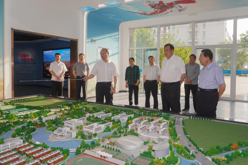 马跃启陪同客人参观了校史馆。(韩承晋供稿)