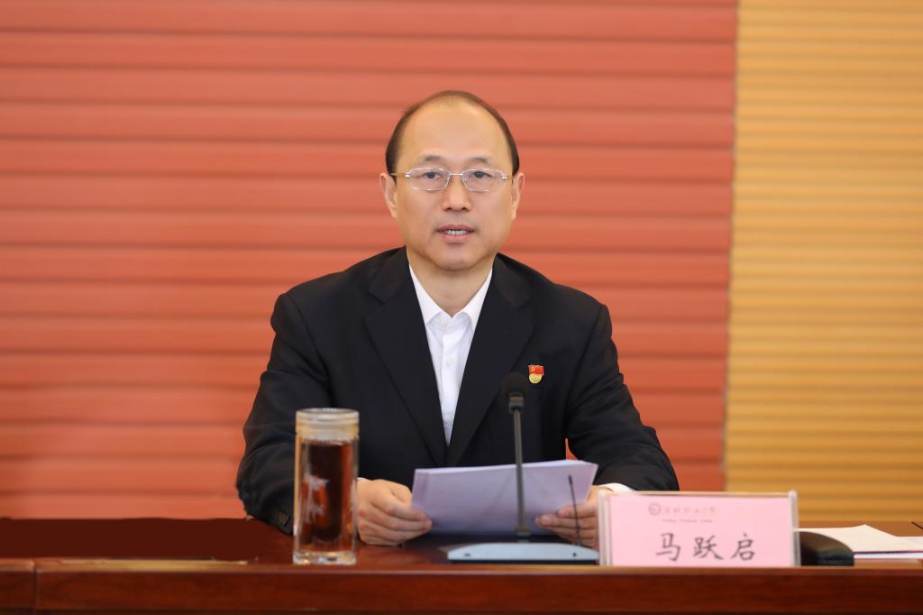 马跃启在讲话中指出,开展党史学习教育,既是贯彻落实习近平总书记重要讲话精神的重要举措,也是贯彻“不忘初心、牢记使命”制度和推进“两学一做”常态化制度化的生动实践,有着重大而深远的意义。我们要以党史学习教育为契机,提高政治站位,突出习近平新时代中国特色社会主义思想学习教育这个重中之重,不断推动新思想往心里去、往深里走、往实处落,为实现学校事业高质量发展凝聚最广泛的思想共识和价值认同。
