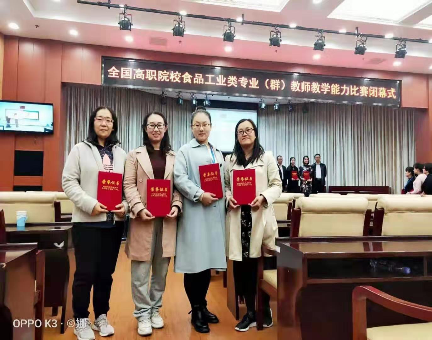 10月21日,2019年全国高职院校食品工业类专业(群)教师教学能力比赛在北京电子科技职业学院圆满结束。我院教师卜令娜、孙显慧、杜冰冰、丁文慧组建的教学团队获二等奖。