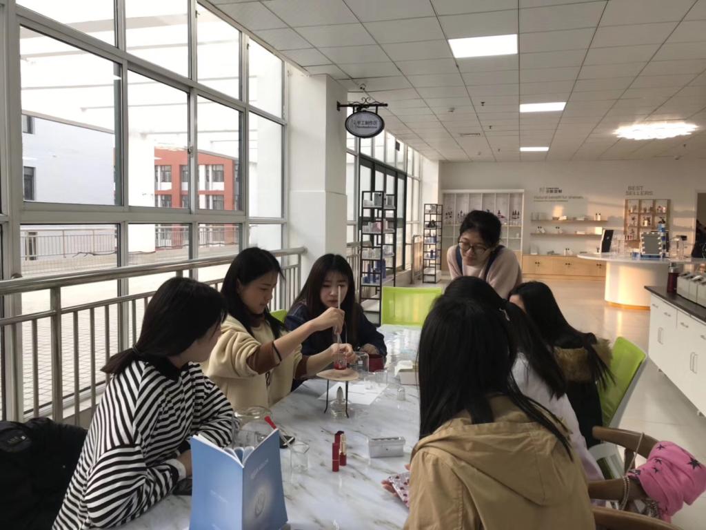 大学生创新创业基地的运营为我院创新创业教育搭建了实践平台,有助于培养学生实践能力和创新创业意识,为我院学生提供了创新创业实践机会,推进了我院优质校的建设。本基地是我院化妆品技术专业的实训基地、在校生创新创业基地、企业的“美业商学院”以及校企共建的“特色二级学院”,承担学生实训、创新创业教育、社会培训、产品销售、皮肤管理和DIY手工定制等多项功能。本基地的建设是在“健康中国2030”背景下,针对在校生选择和使用化妆、护肤产品中的误区,基于最新的皮肤检测技术,有针对性的指导如何选择和使用适用于自身的产品,基地启动当日,吸引了大量师生前来体验。