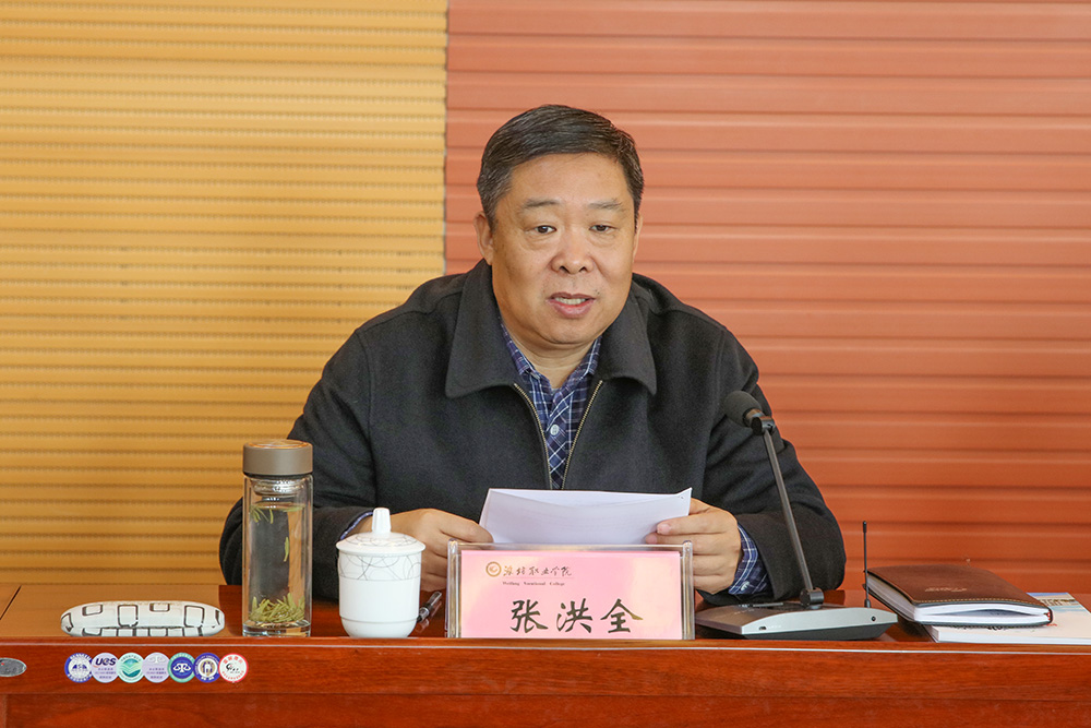 张洪全在致辞中向理事会单位和理事对学院事业发展的关心、支持表示了感谢。他从党的建设、优质高职院校建设、事业发展基本建设、产教融合校企合作等方面介绍了一年来学院发展情况。他强调,高等教育正处于转型并向高质量发展的关键时期,全省、全国的优质高职院校建设,教育部启动的“中国特色高水平高职院校和专业建设计划”,给学院事业发展带来了新的机遇和挑战。下一步,理事会要以习近平新时代中国特色社会主义思想为指导,认真贯彻落实党的十九大精神和全国教育大会精神,坚持“抓党建,促创建”工作主线,从学院办学实际出发,进一步加大制度建设力度,构建现代大学制度,推进依法治校,推进学院治理体系和治理能力现代化;进一步发挥联系社会、服务社会的作用,深化体制机制改革,建立健全政府、企业、社会共同支持和监督学院发展、协同育人的长效机制;进一步拓宽发展思路,抢抓新旧动能转换和“四个城市”建设的重大机遇,加快集聚各类优质资源,加强学科团队和平台建设,创新人才培养模式,朝着更高发展目标迈进;进一步助推学院提升人才培养质量和综合办学实力,努力创建“潍坊龙头、全省前列、全国一流”高水平高职院校,为区域经济社会发展作出更大贡献。