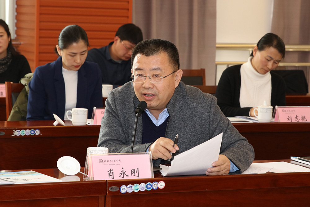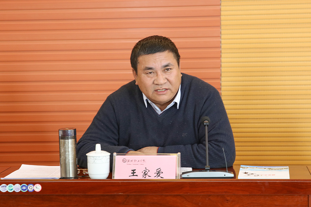 王家爱汇报了学院建设发展情况。他从体制机制创新、专业(群)建设、师资队伍建设、技术技能积累和社会服务、信息化建设、国际交流与合作、创新创业教育、校园文化建设、标志性成果等9个方面介绍了学院一年多来取得的显著成绩。王家爱指出,学院发展仍面临投入不足、机制不活、校企合作深度不够等问题,下一步要认真贯彻落实全国教育大会精神,创新工作思路和方法,紧密围绕落实学院第七次教学工作会议任务部署和优质高职院校建设,努力争创省级、国家级优质高职院校,全力冲击“特高校”建设。最后,王家爱用习近平总书记的金句“山再高,往上攀,总能登顶;路再长,走下去,定能到达”与大家共勉。
