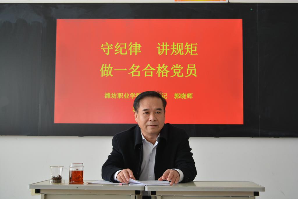 郭晓辉结合党史和党的纪律建设要求,论述了作为党员干部守纪律、讲规矩的重要性。他说,党的十八大以来,党中央全面加强党的纪律建设,严厉惩治腐败,坚决克服组织涣散、纪律松驰现象,维护了党的团结统一,增强了党的凝聚力和战斗力。同时也要看到,党内还存在一些无视党的纪律、破坏党的规矩现象,有的还相当严重。一些党员法纪意识、制度意识、规矩意识淡薄,顶风违纪、违反八项规定精神的问题时有发生。他要求全体党员特别是党员领导干部要牢固树立起纪律意识和规矩意识,坚决做到政治信仰不变、政治立场不移、政治方向不偏,在政治上讲忠诚、组织上讲服从、行动上讲纪律,坚决维护党的团结统一,坚定不移与党中央保持高度一致。他还结合国内外的一些事例,阐述了一个执政党,如果没有了规矩,就会丧失战斗力,就会失去民心,得不到群众的拥护和支持,就会失去执政地位,国家也会丧失凝聚力,存在亡党亡国的危险,因此必须讲规矩有纪律。