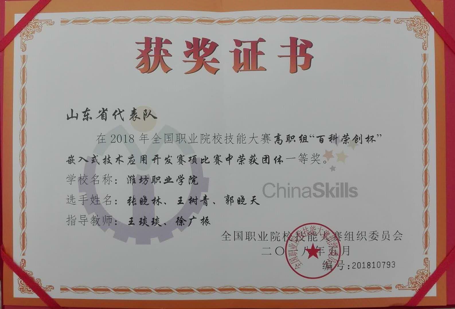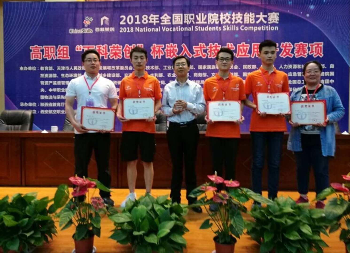 5月27日,2018年全国职业院校技能大赛高职组“嵌入式技术应用开发”赛项在西安航空职业技术学院举行,共有来自全国各省市的95支代表队参赛。我院机电工程学院学生王树青、张晓林等组成的山东代表队在比赛中沉着应战,通力合作,最终获得该赛项一等奖第一名的好成绩。