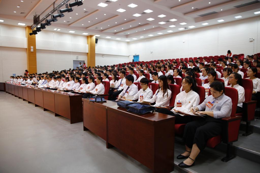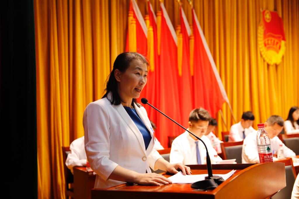 刘志艳代表共青团潍坊职业学院第一届委员会作了题为《高举团旗跟党走青春建功新时代》的工作报告。王嘉迪同学代表潍坊职业学院第一届学生委员会作了题为《坚定信念勇于担当让青春在建设优质高职院校中焕发绚丽光彩》的工作报告。