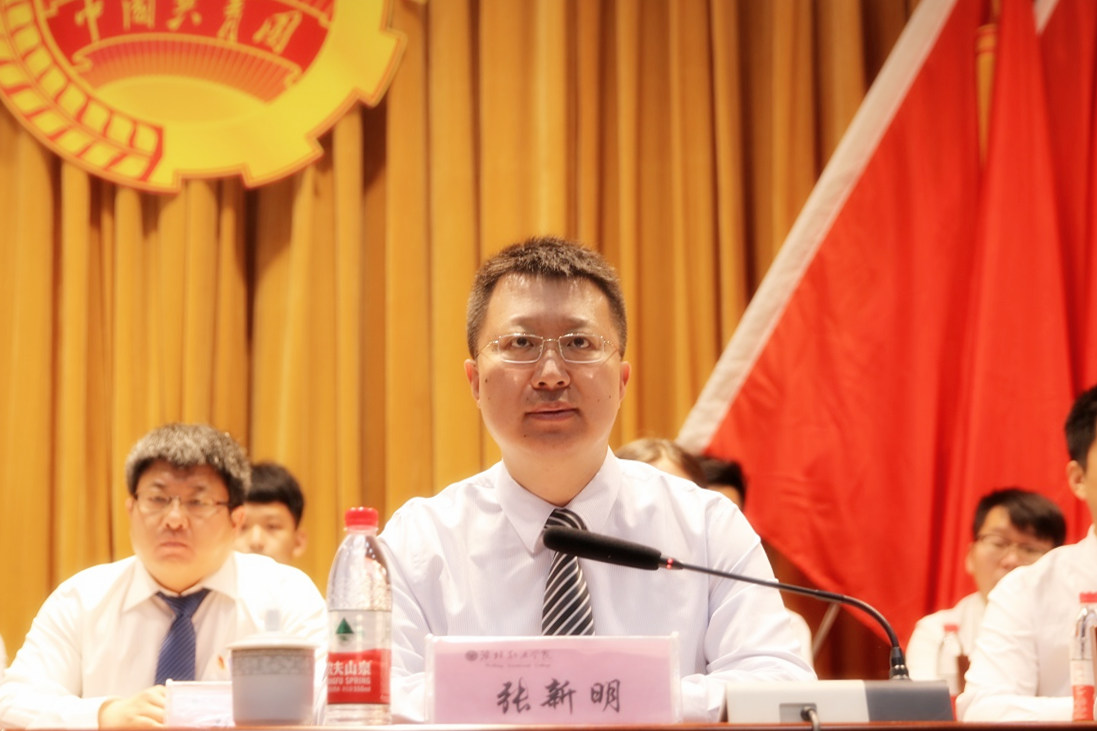 张新明代表共青团潍坊市委向大会的召开表示热烈的祝贺,并从加强理想信念教育、增强团组织的凝聚力、从严治团、服务青年学生成长成才四方面对我院团学工作提出希望。
