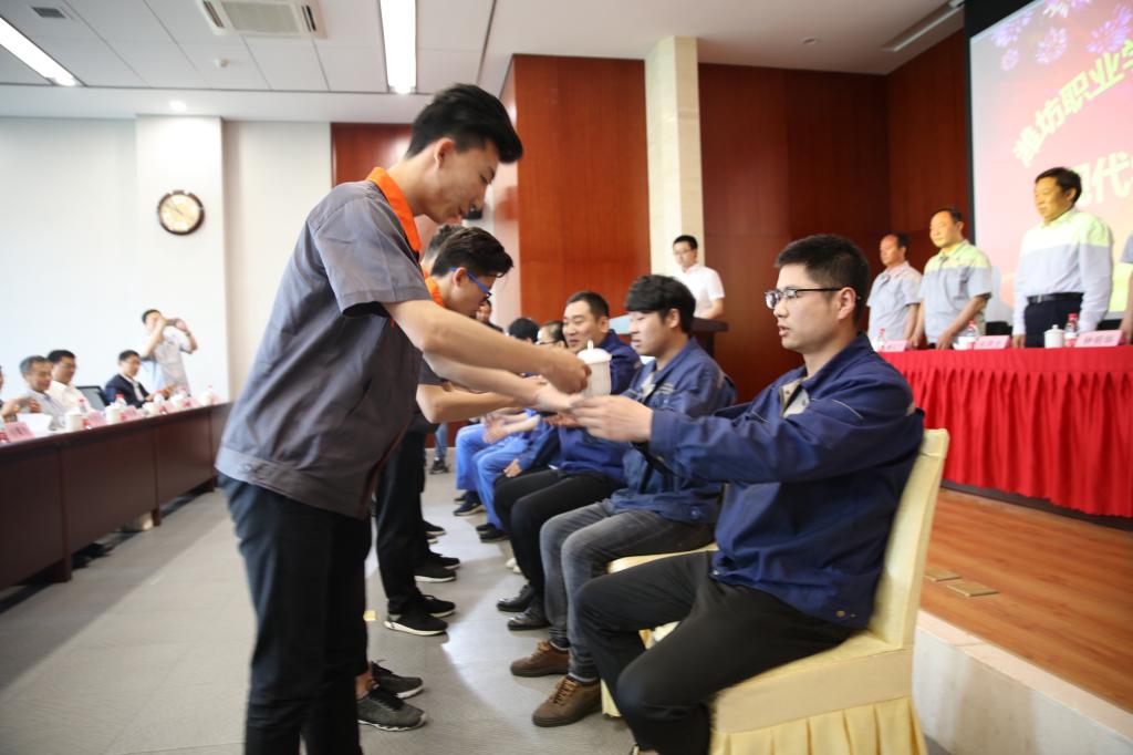 张洪全在企业现场召开了校企合作座谈会,在听取了职能部门和二级学院近期校企合作开展情况汇报后,他就进一步推进产教融合,加强校企合作提出了意见和要求,一是要坚定不移抓好校企合作。要学习领会好党的十九大精神,抢抓机遇,解放思想,开拓创新,主动对接大型、知名企业,推进产教深度融合,校企深度合作,服务好山东省新旧动能转换重大工程建设。二是要抓住育人模式改革这个关键。要强化生产实践环节的企业育人功能,紧扣现代化发展内涵,推进理实一体化教学,实现校内校外一体化育人,推动学院的育人模式改革和教学改革。三是要突出校企合作特色。各学院要根据自身专业特点,选准人才培养的结合点,与企业实现多层次、多模式、多元化合作,形成专业特色鲜明的校企合作新模式,为地方经济社会发展培养更多的高素质技术技能人才。四是要把校企合作工作落实做细。各部门、二级学院要不怕困难、砥砺奋进,扎实有效推进校企合作工作落地落实,创新校企协同育人,提升人才培养质量,让每位学生成长成才,把潍坊职业学院建设成为名副其实的优质高职院校。