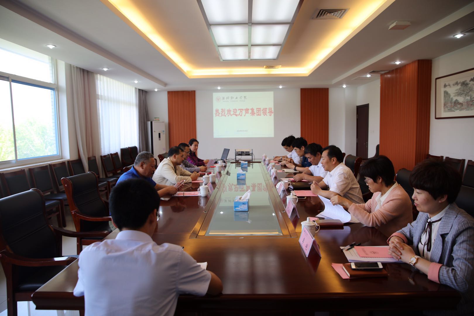 张洪全指出,学院与万声集团共建现代服务业混合所有制二级学院,实现了企业、学校和学生三方共赢,成为校企深度合作的典范,为学院的改革和发展做出了积极贡献。在当前全省全市推进新旧动能转换重大工程建设的背景下,学院要主动通过创新人才培养模式、优化专业结构、紧抓内涵建设,在思想上、理念上、行动上适应新旧动能转换要求,对接潍坊产业和企业需要,培养适应产业转型升级和企业需要的人才,助力区域产业和企业的发展。