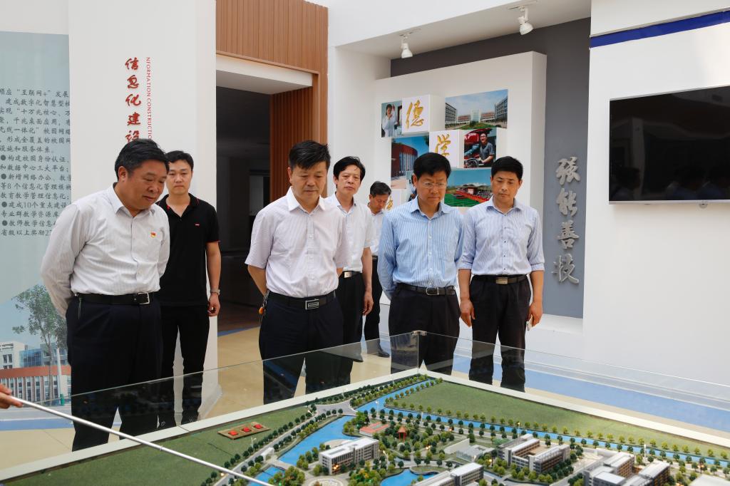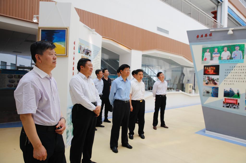 张洪全陪同客人参观了学院成果展室和滨海校区.(王晓健供稿)
