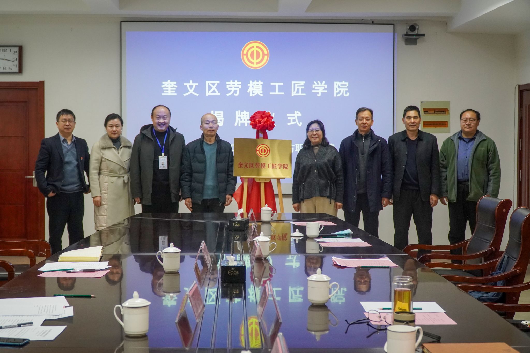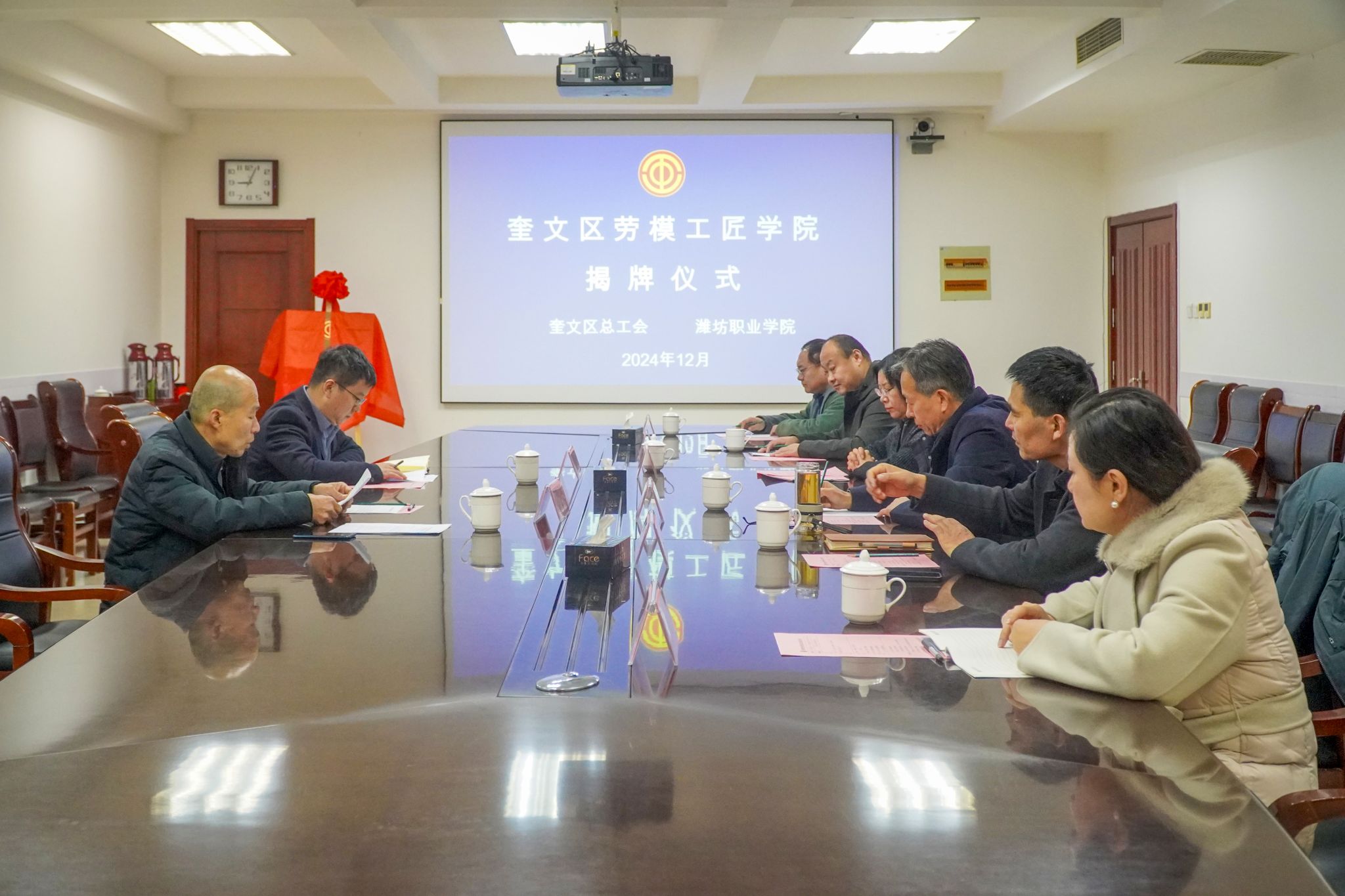 12月31日,奎文区劳模工匠学院在潍坊职业学院奎文校区举行揭牌仪式暨合作发展座谈会。潍坊职业学院党委委员高凌云,奎文区总工会党组成员、一级主任科员李军,学院工会主席,教务处、继续教育学院、机电工程学院负责人及教师代表出席活动。