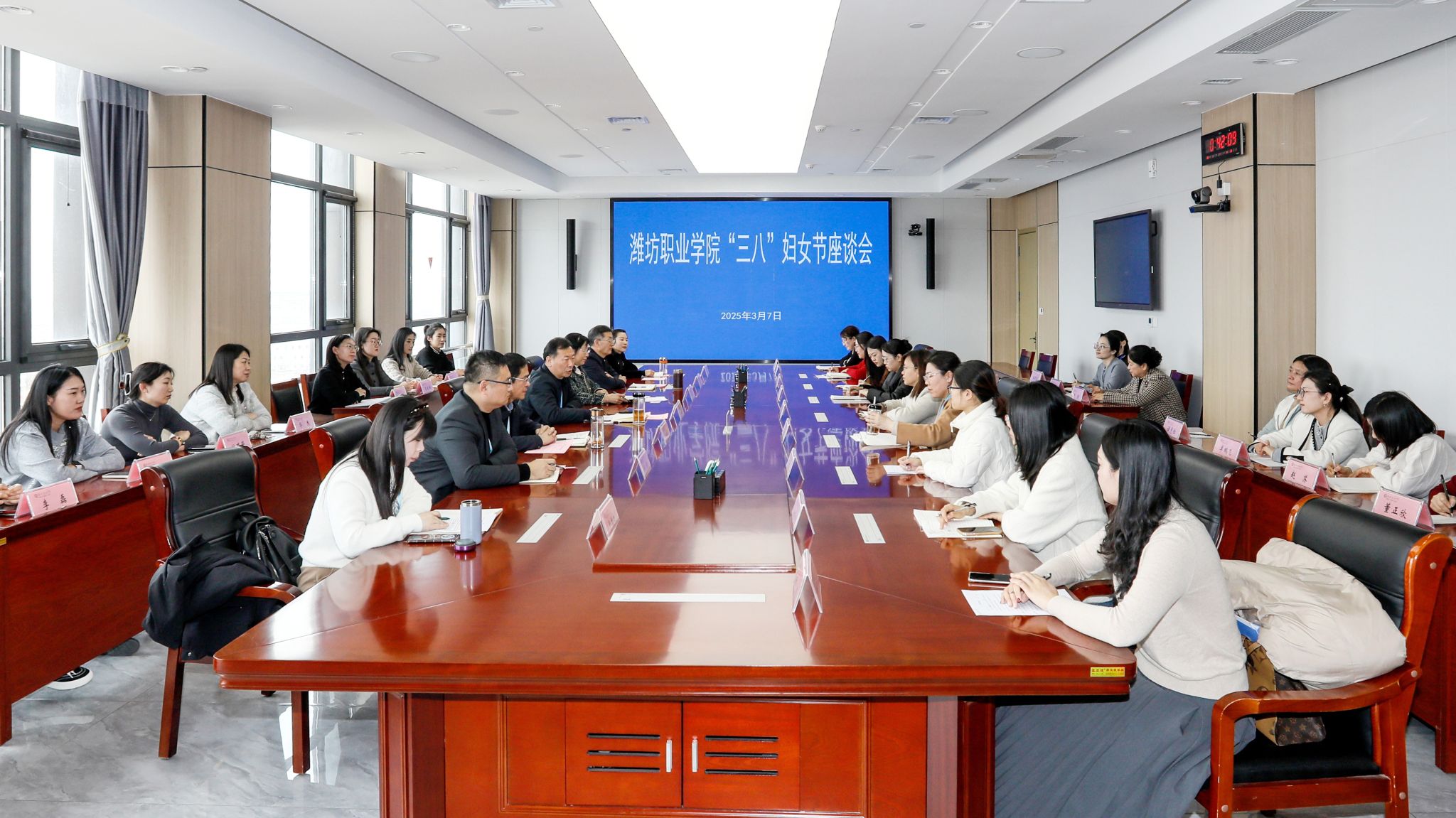 3月7日上午,学院在滨海校区综合楼1119会议室召开纪念第115个“三八”国际劳动妇女节座谈会。学院党委副书记贺志强,党委委员高凌云,党委委员、纪委书记、监察专员王国成,党委委员、副院长任培华,党委委员、组织人事处(离退休工作处)处长于涛出席座谈会,相关部门负责人以及女教职工代表40余人参加座谈。