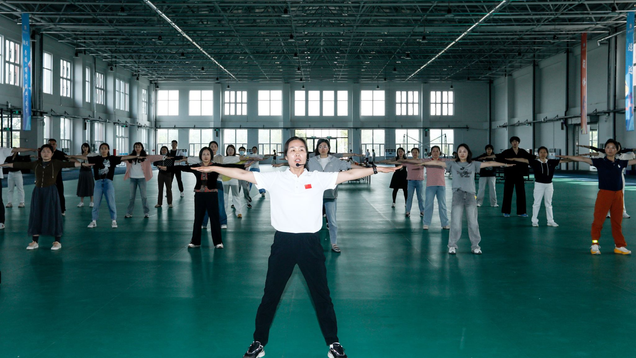 学院教职工工间操包括广播体操、八段锦、太极拳等传统健身项目。培训期间,通识教育中心4位教练员始终保持专业素养,从站立姿态到伸展幅度,耐心讲解示范与纠正。参训教师认真学习、专注训练,展现出良好风采。