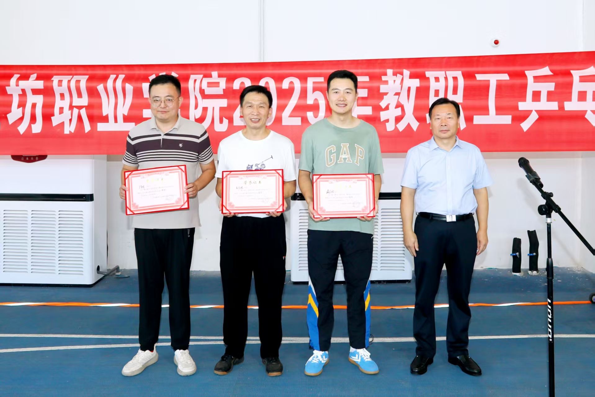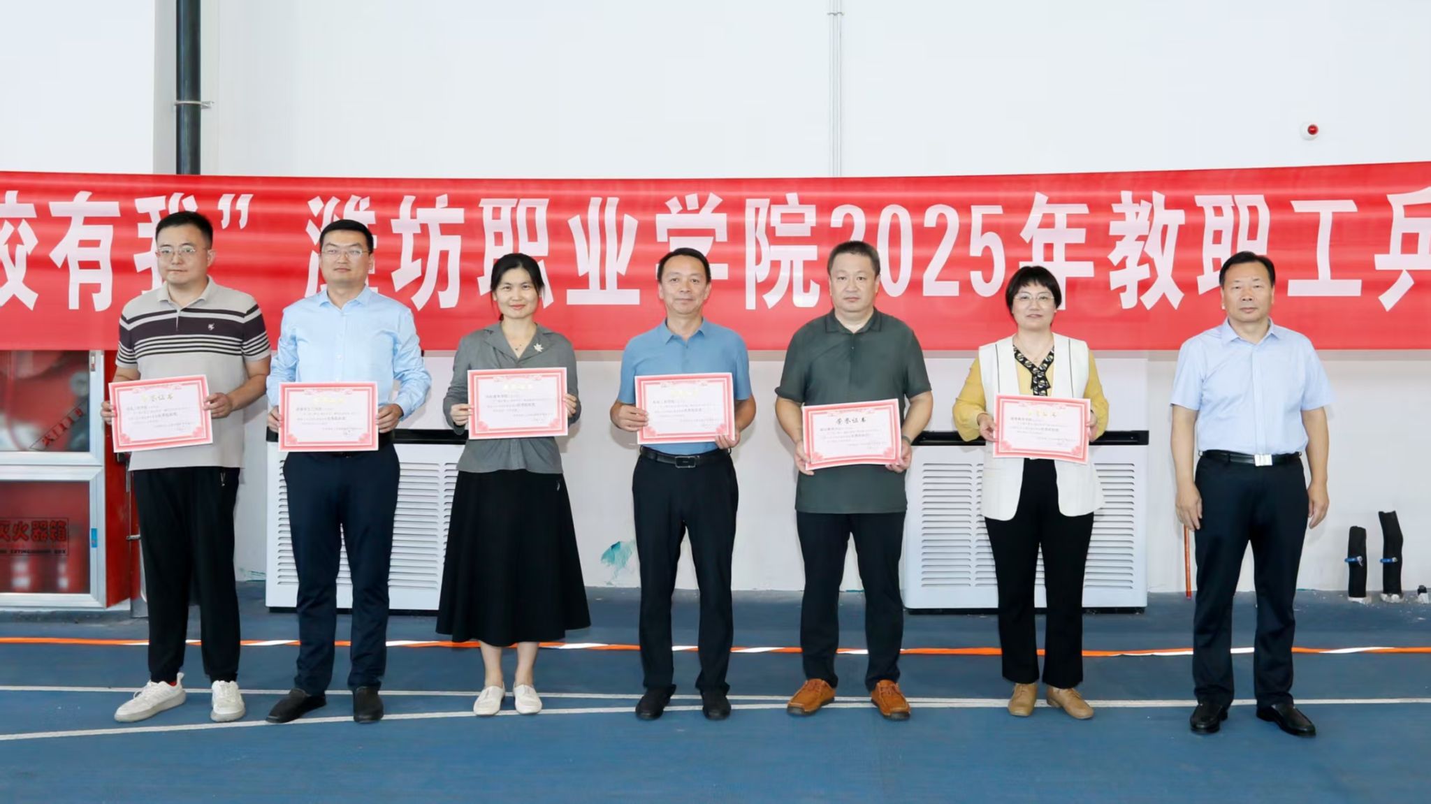 本次比赛是落实《潍坊职业学院教职工全员健身活动方案》的赛事之一,由学院工会主办,通识教育中心、后勤服务处医疗服务中心协办。