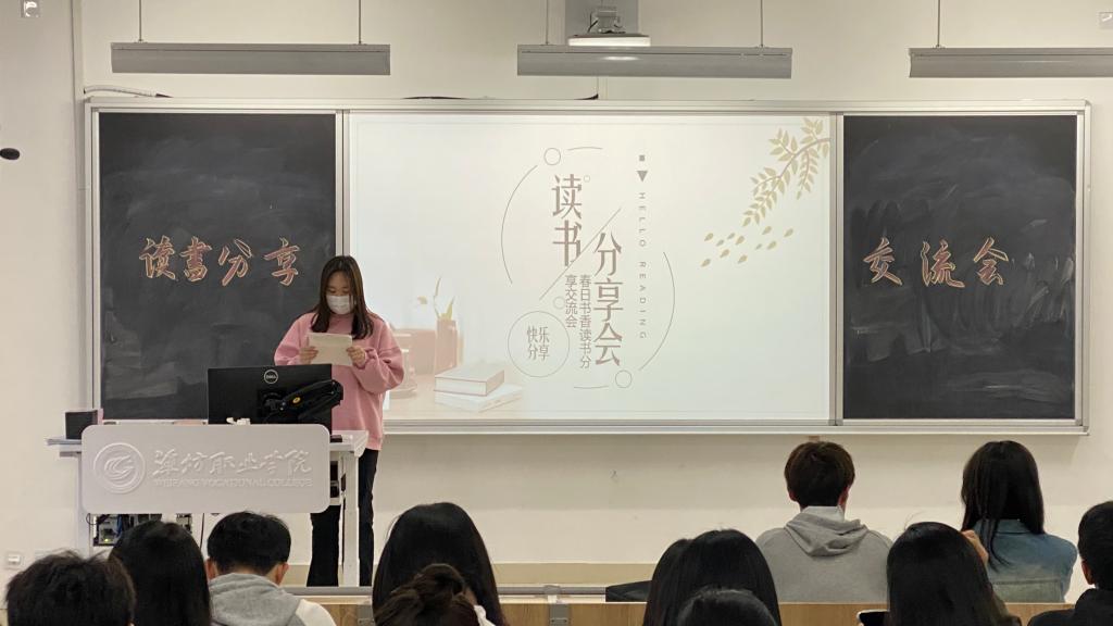 本次活动的开展,不仅让同学们开阔了视野,增长了知识,还提高了同学们的认读水平和写作能力,同时丰富了同学们的课余生活。信息工程学院还将陆续开展“书香潍职”读书征文活动、中华经典诵读比赛、“书香班级”“书香寝室”评选活动、入党积极分子红色读书班等系列活动,激发同学们的阅读兴趣,引导青年学生以书香浸润灵魂,用知识武装头脑,推动形成以阅读凝聚力量、提振精神、讲好潍职故事、传播好潍职声音,营造浓厚的书香气息,为校园文化建设贡献力量。(张斌 赵争光供稿)