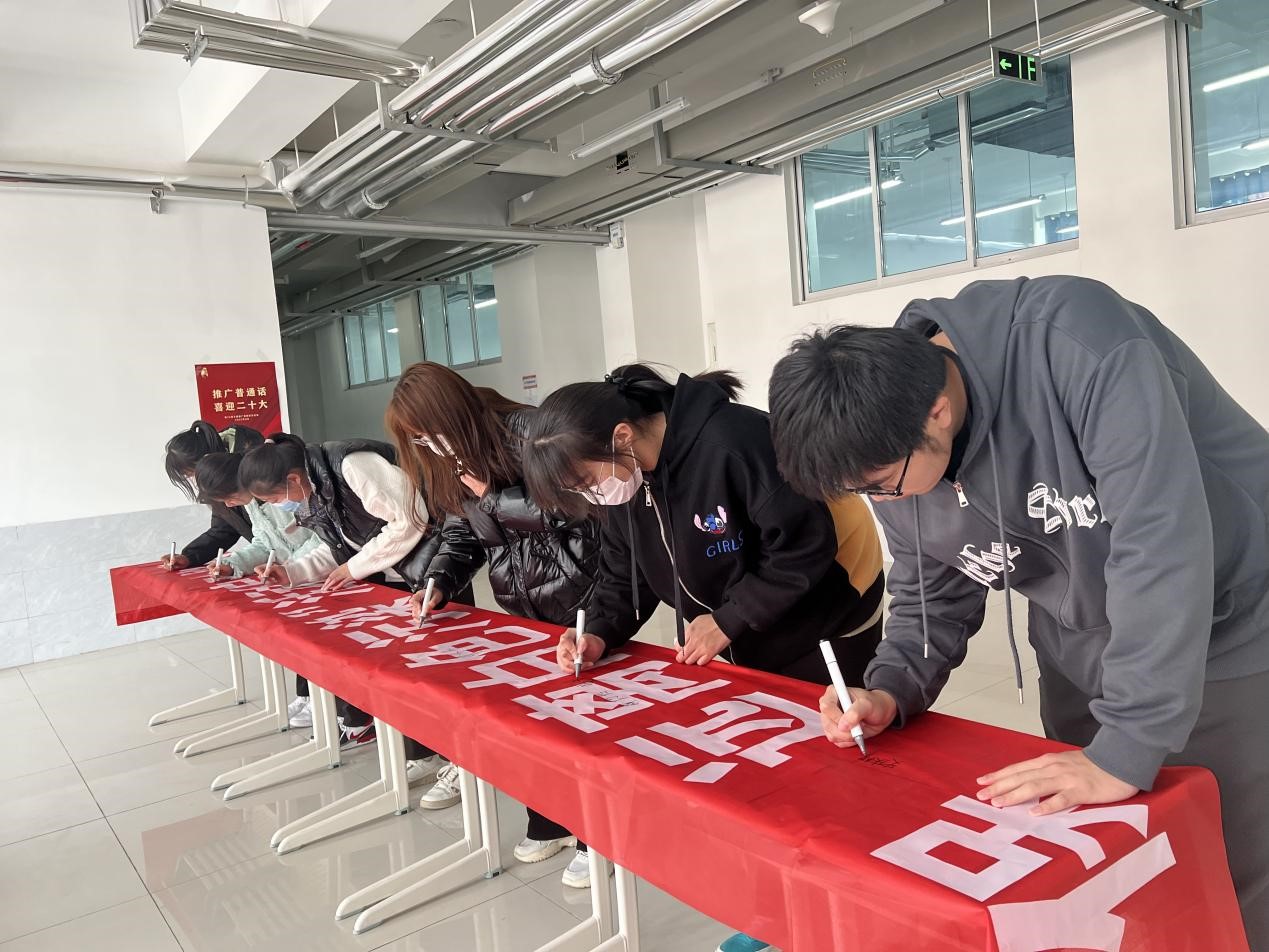 活动在“牵手绿色环保 远离白色污染”主题团课中拉开序幕。团课上,辅导员用生动有趣、贴近生活实际的小视频导入主题,从常见的白色污染的现状、危害、塑料分类及使用等方面讲授,要求全体同学从自我做起、从现在做起,切实践行拒绝白色污染。随后,该院开展知识竞赛,同学们踊跃参与,认真思考,在竞赛中学习白色污染和垃圾分类知识。接着,该院开展承诺签名活动,学生会骨干、班委成员带头在写有“牵手绿色环保 远离白色污染”的条幅上郑重签名,并承诺在日常生活中减少使用一次性用品,拒绝白色垃圾进校园,加强自我管理,相互监督,做文明学子,建文明校园。最后,同学们共同宣读倡议书,积极响应学院环保号召,从现在开始,从身边做起,争做“节约达人”,为建设美丽校园贡献自己的一份力量。后续,该院将成立专门队伍重点对食堂、宿舍等白色污染一次性用品使用区域开展文明劝导活动,积极引导同学们充分利用餐厅资源,自觉堂食,杜绝打包,用实际行动向白色污染说“不”。