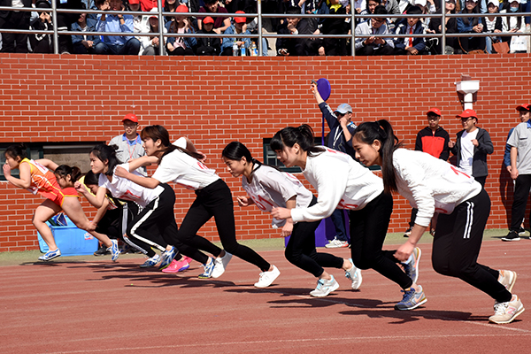 本届运动会同时在滨海、奎文校区举行。奎文校区各项赛事于4月27日上午结束,贺志强出席闭幕式并为获奖者颁奖。(张珣然供稿)