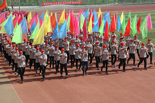 伴随着激昂的运动员进行曲,国旗队、彩旗队、裁判员队及各代表队依次入场。一支支队伍迈着整齐有力的步伐走过主席台,展现出潍职师生奋发昂扬的崭新姿态。